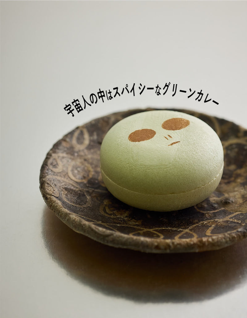 UFOモナカの中には和風カレーの粉末スープが入っています。宇宙人モナカの中にはグリーンカレーの粉末スープが入っています。